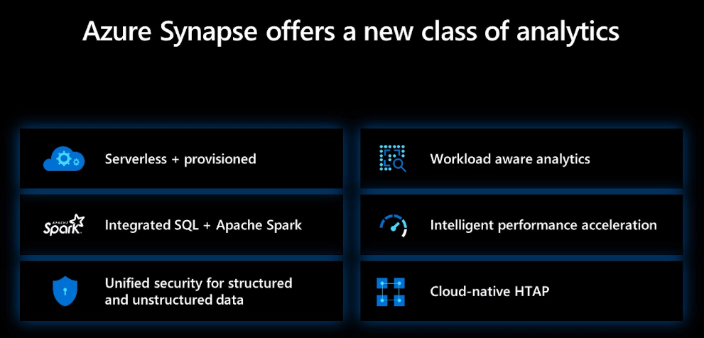 Azure Synapse offers a new class of analytics. There were two announcements Public Preview of Azure Synapse Link for Azure Cosmos DB (Synapse SQL Serverless) and Private preview of Power BI performance accelerator for Azure Synapse Analytics.